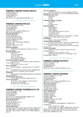 Telefon: 0269-531101; Activităţi specifice zonei: