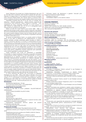 348 / JUDE%u021aUL DOLJ WWW.GHIDULPRIMARIILOR.ROIstoric P%u0103durea Ciurumela sau Gr%u0103dina Boiereasc%u0103, a%u0219a cum au mai denumit-o localnicii, este situat%u0103%u00a0%u00een partea de sud-vest a Olteniei, %u00een jude%u021bul Dolj, %u00een aria major%u0103%u00a0a luncii fluviului Dun%u0103rea, %u00eentre comuna Poiana Mare, sat Tunarii Vechi %u0219i comuna%u00a0 Piscu Vechi, la distan%u021ba de 20 km de ora%u0219ele Calafat %u0219i 85 km de Craiova.%u00a0Suprafa%u021ba ocupat%u0103%u00a0 este de 10 ha, pe care s-a instalat activ salcamul - Robinia pseudacacia - specie exotic%u0103, originar%u0103%u00a0 din continentul nord american, statul Virginia %u0219i Kentuky - SUA; vegeteaz%u0103%u00a0 pe soluri nisipoase, evoluate, cu mult humus, cu ap%u0103%u00a0 freatic%u0103%u00a0 la ad%u00e2ncimea de 4-5 m %u0219i %u00een compozi%u021bie pur%u0103, nesuport%u00e2nd %u00een preajma sa alte specii.Istoric, se %u0219tie c%u0103%u00a0 a luat fiin%u021b%u0103%u00a0 %u00een jurul anilor 1880 - 1883, ca pepinier%u0103%u00a0de produs puie%u021bi, pentru fixarea nisipurilor zbur%u0103toare din zon%u0103; acestea f%u0103ceau imposibil%u0103%u00a0existen%u021ba satelor %u0219i a oamenilor, din cauza navalei nisipului mi%u0219cat mai tot timpul de v%u00e2nt, care le invada casele sau bordeele %u0219i le mai facea %u0219i imposibil%u0103%u00a0cultivarea lor pentru hrana de zi cu zi.%u00a0Se spune c%u0103%u00a0 Domnitorul Carol I, cu ocazia venirii la Poiana Mare, %u00een anul 1877, al R%u0103zboiului de Independen%u021b%u0103, cu scopul atac%u0103rii armatei turce%u0219ti cantonate peste Dun%u0103re, la Widin %u0219i stabilirii Cartierului general al armatei %u00een proprietatea prin%u021bului s%u00e2rb Obrenovici, actualul parc al comunei, nu a mai putut suporta %u00een acea primavar%u0103, c%u00e2nd v%u00e2nturile bat cu cea mai mare intensitate, spulberi%u0219urile de nisip %u0219i a dat ordin s%u0103%u00a0 se planteze terenurile nisipoase de aici. %u00cen urma diligentelor purtate, %u00een anii urm%u0103tori a fost adus %u00een zon%u0103%u00a0un inginer polonez Mitkiewici, ce s-a ocupat mult timp pentru st%u0103p%u00e2nirea invaziei nisipurilor prin plantarea unor intinse suprafe%u021be cu puie%u021bi de salc%u00e2m.%u00a0Dup%u0103%u00a0 cultivarea mai mul%u021bi ani dear%u00e2ndul a suprafe%u021bei Ciurumelei, %u00een scopul producerii de puie%u021bi %u0219i epuiz%u0103rii inevitabile a poten%u021bialului solului, pepiniera a fost abandonat%u0103, %u00een urma%u00a0 sa dezvolt%u00e2ndu-se un arboret, o p%u0103dure de salc%u00e2m, care a atins elemente dendrometrice, dimensiuni %u00een %u00een%u0103l%u021bime deosebit de mari, 25-30 m, %u00eentrec%u00e2nd arboretele din %u021bara de origine. Lucrul acesta a fost observat %u0219i de speciali%u0219ii americani care au participat %u00een anul 1934 la un Congres al agriculturii %u0219i silviculturii, la invita%u021bia autorit%u0103%u021bilor %u0219i a marelui profesor silvicultor Marin Dracea, c%u00e2nd unanim s-a apreciat c%u0103%u00a0aici, %u00een acest punct, salc%u00e2mul %u0219i-ar fi g%u0103sit a doua patrie. %u00cen timpul primului r%u0103zboi mondial, %u00eentr-unul din arborii de mari dimensiuni, armata ar fi instalat un observator din care se puteau vedea mi%u0219c%u0103rile de trupe pe calea ferat%u0103%u00a0Calafat - Craiova, %u00een direc%u021bia Mo%u021b%u0103%u021bei. Unul din asemenea exemplare se mai afl%u0103%u00a0%u0219i ast%u0103zi la fa%u021ba locului, grav afectat de trecerea vremii.%u00cen timp, arboretul de salc%u00e2m din Ciurumela s-a degradat fiziologic %u0219i %u00een anii 1973 - 1975 a fost t%u0103iat %u0219i defri%u0219at, locul fiind luat de salc%u00e2m selectat %u0219i ameliorat genetic, superior, cu cre%u0219teri rapide %u0219i cu rectitudinea trunchiului aseman%u0103toare speciilor de r%u0103%u0219inoase, este vorba de o nou%u0103 denumire uzitata %u00een r%u00e2ndul speciali%u0219tilor silvici de - Robinia pseudacacia var. %u201cOltenica%u201dEvenimente:S%u0103rb%u0103toarea Salc%u00e2mului - 15 maiZiua comunei Poiana Mare - 9-10 septembrieCump%u0103na dintre ani 31 decembrieFacilit%u00e3%u0163i oferite investitorilor:Acces la DN 55A, la drum jude%u021bean CALAFAT-BECHETCERNAVOD%u0102Acces la podul DUN%u0102RE-CALAFAT-VIDINTelefonieRe%u021bea cabluFor%u021b%u0103%u00a0de munc%u0103Oportunit%u0103%u021bi: Sol fertil pentru agricultur%u0103Depozite de valorificare a legumelor %u00een special tomate, ardei, castrave%u021bi %u0219i investi%u021bii %u00een procesarea lorExploatarea materialului lemnos: p%u0103duri de salc%u00e2m caracteristic zonei de nisipAmenaj%u0103ri piscicole: Lunca Dun%u0103riiProiecte de investi%u0163ii:Reabilitare %u0219i modernizare T%u00e2rg s%u0103pt%u0103m%u00e2nal prin CNIAsfaltarea str%u0103zilor prin Programul Na%u021bional Anghel Saligny %u0219i AFIRReabilitarea termic%u0103%u00a0a %u0219colilor prin PNRR %u0219i ADR SV OlteniaIluminat public prin AFMCre%u0219terea eficien%u021bei energetice a cl%u0103dirilor publiceConstruire sta%u021bii de re%u00eenc%u0103rcare pentru vehicule electrice prin AFMConstruire parc fotovoltaic AFMReabilitare %u0219i modernizare sediu prim%u0103rie prin CNI%u00cenfiin%u021bare sistem de distribu%u021bie a gazelor naturale prin Programul Na%u021bional Anghel Saligny%u00cemp%u0103durire terenuriConsolidare cl%u0103diri cu risc seismic ridicatCOMUNA PREDE%u015eTIAdres%u0103: Principala, nr. 82Cod po%u0219tal: 207475Telefon: 0251-454002; Fax: 0251-454183, 454002; Adresa de e-mail: primariapredesti2016@gmail.comURL: www.primariapredesti.roPersoane din primarie:Primar:%u00a0%u015eerban%u00a0FlorianSecretar General: Dinc%u0103 Ionu%u021b DanielContabil: Nicol%u0103escu Teodor ValentinSate %u00een administra%u021bie:PREDESTI.PREDESTI MICI ,BUCICANISuprafa%u021ba:%u00a0 4302 ha; Intravilan:%u00a0 395 ha; Extravilan:%u00a0 4000 ha; Popula%u021bia:%u00a02051; Gospod%u0103rii:%u00a0930; Locuin%u021be:%u00a0930; Gr%u0103dini%u021be:%u00a01; %u0218coli:%u00a01; Cum s