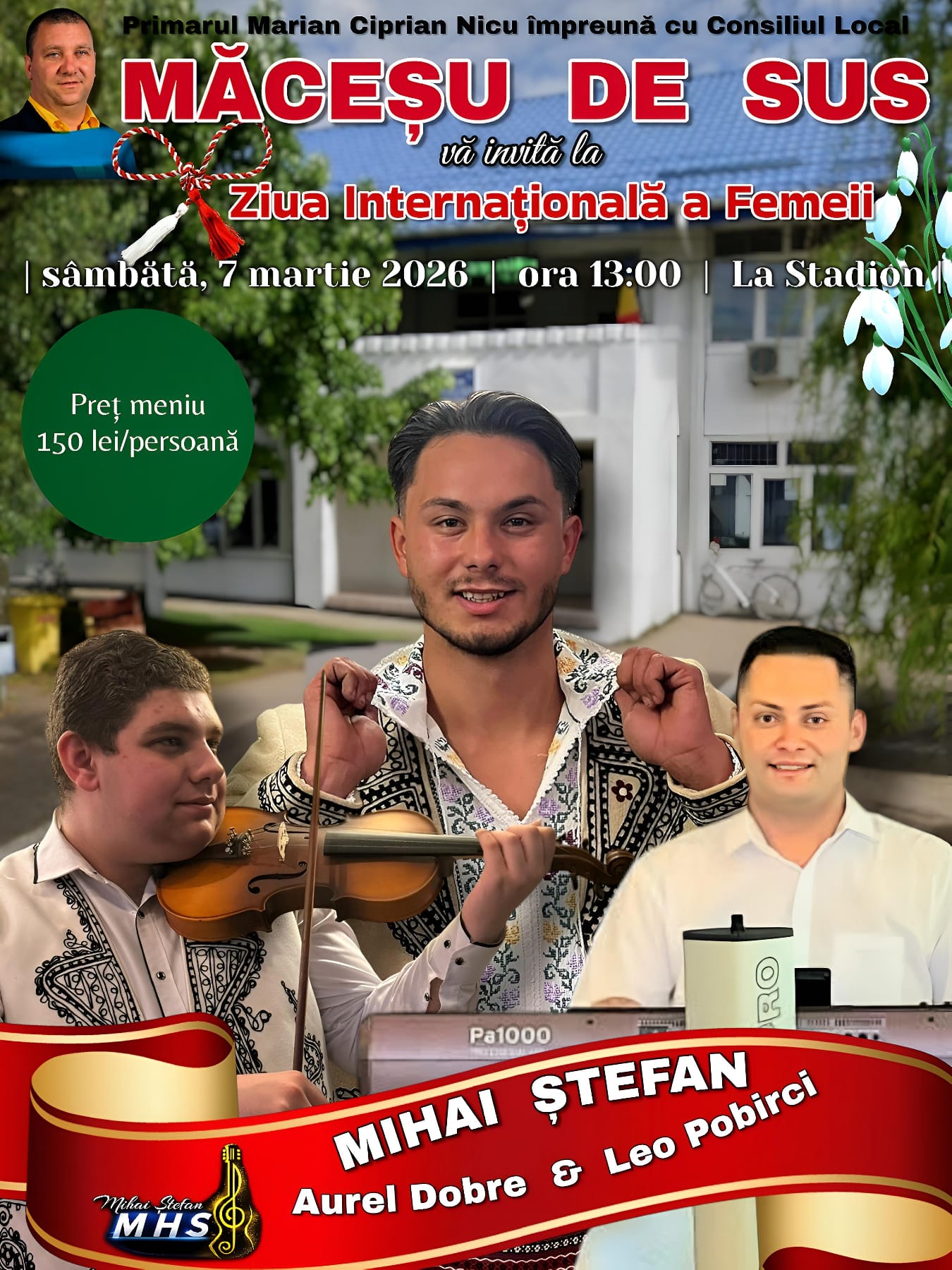 Primarul Ciprian Marian Nicu invită doamnele la o petrecere de neuitat! Sâmbătă, 7 martie, ora 13:00, la Stadion, vă așteaptă un meniu festiv și muzică live cu Mihai Ștefan, Aurel Dobre și Leo Pobirci.