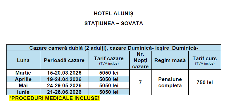 CURSURILE ORGANIZATE LA HOTELUL ALUNIȘ DIN STAȚIUNEA SOVATA SUNT: