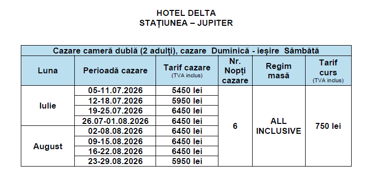 CURSURILE ORGANIZATE LA HOTELUL DELTA DIN STAȚIUNEA JUPITER SUNT: