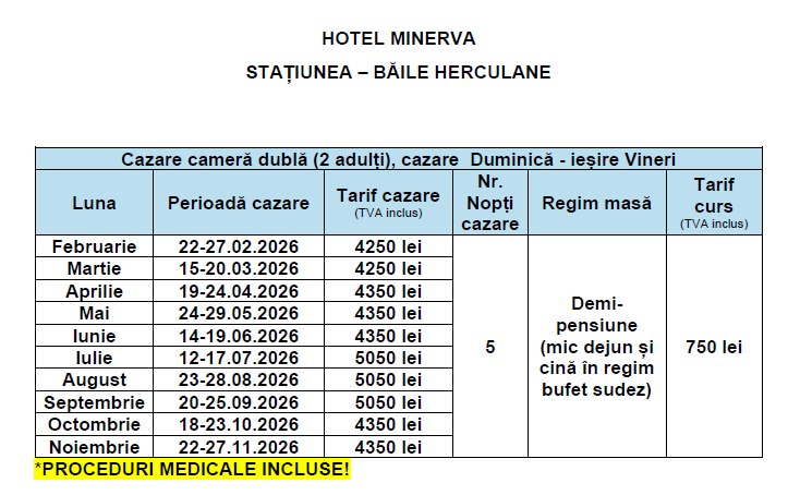 CURSURILE ORGANIZATE LA HOTELUL MINERVA DIN STAȚIUNEA BĂILE HERCULANE SUNT: