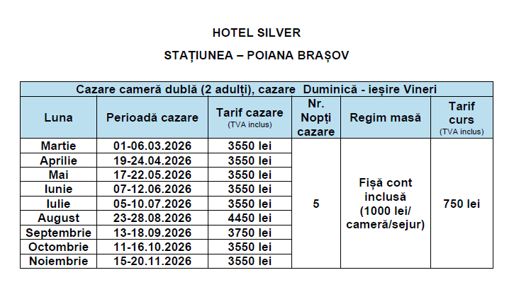 CURSURILE ORGANIZATE LA HOTELUL SILVER MOUNTAIN RESORT DIN STAȚIUNEA POIANA BRAȘOV SUNT: