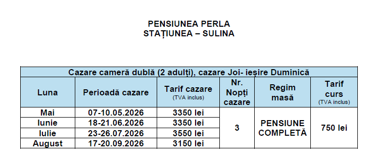 Regim masă: PENSIUNE COMPLETĂ