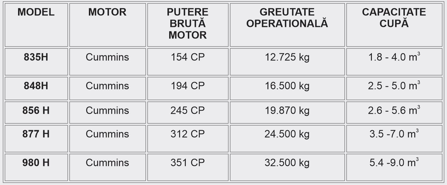 MODELE ÎNCĂRCĂTOARE FRONTALE: