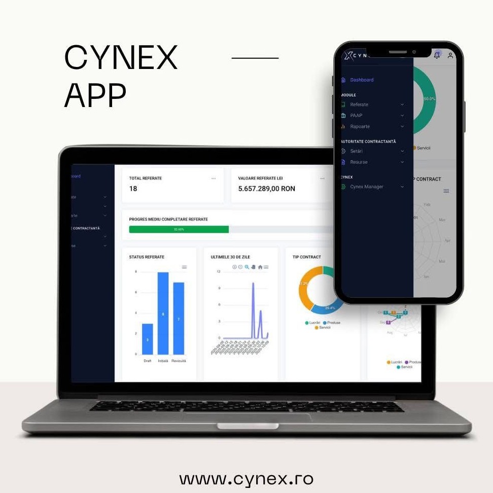 CYNEX este o aplicatie romaneasca, conceputa de specialisti in achizitii publice pentru a sprijini autoritatile contractante (primarii, scoli, spitale, institutii culturale) sa lucreze mai organizat, transparent si conform legii.