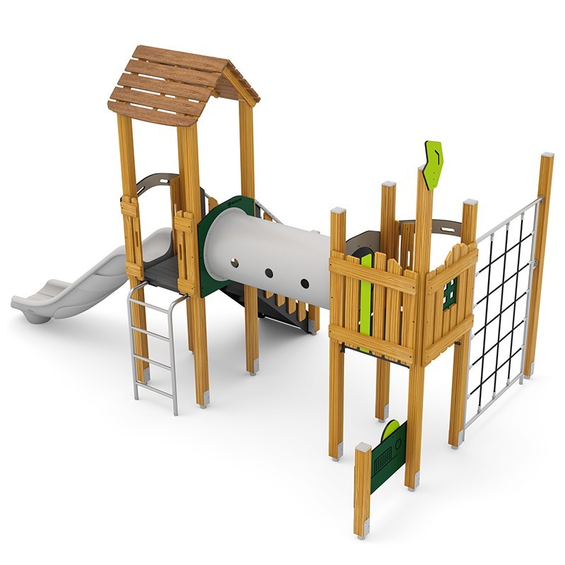 Structura modulara - Turnuri cu tobogan, pasaj tunel, cataratoare si panou educational PZG-W-B005