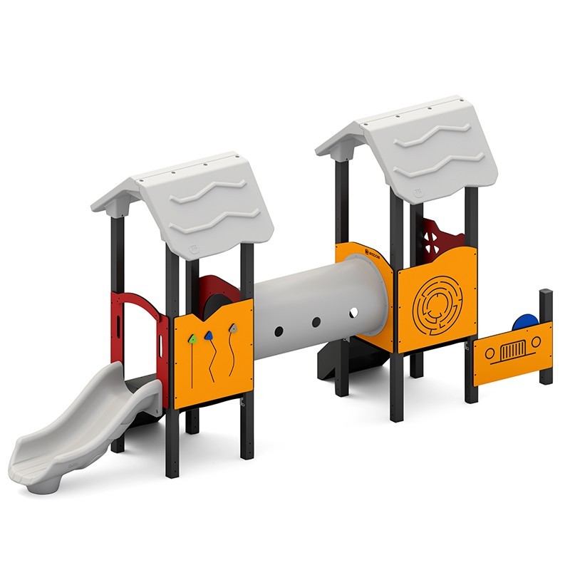 Structura modulara prescolari - Turn cu tobogan, pasaj tunel si panou educational PZG-W-A018P