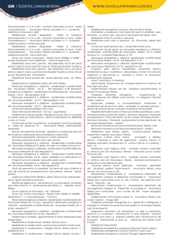 228 / JUDE%u021aUL CARA%u0218-SEVERIN WWW.GHIDULPRIMARIILOR.ROMicroraioanelor 2, 3 si 4 din%u00a0 cartierul Govandari %u0219i zona%u00a0 Calea Caransebe%u0219ului -%u00a0 Municipiul Resi%u021ba (scindare %u00een 3%u00a0 proiecte) - reablitare microraion 4 (p2)Reabilitarea zonelor degradate%u00a0 aflate %u00een interiorul%u00a0 %u00a0 Microraioanelor 2, 3 si 4 din%u00a0 cartierul Govandari %u0219i zona%u00a0 Calea Caransebe%u0219ului -%u00a0 Municipiul Resi%u021ba (scindare %u00een 3%u00a0 proiecte) - reablitare parcul%u00a0 tricolorului (p3)Reabilitarea zonelor degradate%u00a0 aflate %u00een interiorul%u00a0 %u00a0 Microraioanelor 2, 3 si 4 din%u00a0 cartierul Govandari %u0219i zona%u00a0 Calea Caransebe%u0219ului -%u00a0 Municipiul Resi%u021ba (scindare %u00een 3%u00a0 proiecte) - reablitare zon%u0103%u00a0str.%u00a0 Caminelor (p4)Drum de ocolire municipiul%u00a0 Re%u0219i%u021ba %u00eentre DN58b %u0219i DJ581 %u2013 (Calea Timi%u0219oarei / zona dedeman%u00a0 - drumul lupacului)Reabilitare zone verzi, parc%u0103ri,%u00a0 alei pietonale, locuri de joac%u0103%u00a0 pentru copii %u00een zona cuprins%u0103%u00a0 %u00eentre str. Par%u00e2ng %u0219i Nicolae%u00a0 TitulescuReabilitare zone verzi, parc%u0103ri,%u00a0 alei pietonale, locuri de joac%u0103%u00a0 pentru copiii %u00een zona cuprins%u0103 %u00eentre Nicolae Titulescu %u0219i bloc 35%u00a0 de pe bd. Revolu%u021bia din%u00a0%u00a0 DecembrieReabilitare scar%u0103 public%u0103 de%u00a0 acces pietonal, auto%u00a0 str. Petru%u00a0 MaiorModernizare %u0219i reabilitare%u00a0 teatru de var%u0103, Resi%u021baRenovare energetic%u0103%u00a0 a cl%u0103dirilor%u00a0 reziden%u021biale multifamiliale din%u00a0 Municipiul Resi%u021ba - lot 9 -%u00a0 Bd republicii nr.18 Renovare energetic%u0103%u00a0a cl%u0103dirilor%u00a0 reziden%u021biale multifamiliale din%u00a0 Municipiul Resi%u021ba%u00a0 - lot 9 -%u00a0 Bd republicii nr.19Renovare energetic%u0103%u00a0 a cl%u0103dirilor%u00a0 reziden%u021biale multifamiliale din%u00a0 Municipiul Resi%u021ba%u00a0 - lot 17 -%u00a0 Bd.republicii nr.23Renovare energetic%u0103%u00a0 a cl%u0103dirilor%u00a0 reziden%u021biale multifamiliale din%u00a0 Municipiul Eesi%u021ba%u00a0 - lot 17 -%u00a0 Bd.republicii nr.24Construire spital jude%u021bean zona%u00a0 triajSta%u021bii re%u00eencarcare electric%u0103 - 45%u00a0 buc - pug Resi%u021baModernizare trotuar partea%u00a0 st%u00e2ng%u0103 sens auto, bd. A.I. Cuza de%u00a0 la intrare auto ipj Cara%u0219-Severin,%u00a0 p%u00e2n%u0103 la intersec%u021bia str. Bielefeld%u00a0 cu bd. A.I. Cuza%u00a0 Continuare lucr%u0103ri la gr%u0103dini%u021ba%u00a0 cu program normal, prelungit %u0219i%u00a0 cre%u0219%u0103, str. Sportului fn -%u00a0 Municipiul Re%u0219i%u021ba -sistematizare%u00a0 exterioar%u0103Servicii de expertiz%u0103 af studiu%u00a0 geotehnic %u0219i expertiz%u0103 tehnic%u0103%u00a0 drum pentru elaborarea%u00a0documenta%u021biilor (calamit%u0103%u021bi)Parcare supraetajat%u0103 ,,domeniul%u00a0 turistic semenic%u201dParcare suprateran%u0103 park and%u00a0 ride centralRenovare energetic%u0103%u00a0 a cl%u0103dirilor%u00a0 reziden%u021biale multifamiliale din%u00a0 Municipiul Resi%u021ba lot 13 aleea%u00a0 trei ape nr.2, aleea tarcului nr.1Renovare energetic%u00a0a cl%u0103dirilor%u00a0 reziden%u021biale multifamiliale din%u00a0 Municipiul Resi%u021ba/lot 8/%u00a0 Bd. Republicii 6Renovare energetic%u0103%u00a0 a cl%u0103dirilor%u00a0 reziden%u021biale multifamiliale din%u00a0 Municipiul Resi%u021ba - lot 15 - aleea%u00a0 vladeasa nr.2, aleea dacia nr.1Program privind casarea%u00a0 autovehiculelor uzateRenovare energetic%u0103%u00a0 a cl%u0103dirilor%u00a0 reziden%u021biale multifamiliale din%u00a0 Municipiul Resi%u021ba - lot 8 -%u00a0 Bd.republicii 8Zon%u0103%u00a0de agrement cu instala%u021bie%u00a0 tip sanie de vara, tiroliene %u0219i%u00a0 turn de control pe%u00a0 amplasamentul vecinatatea%u00a0 stemei - dealul goluluiLeg%u0103tura rutier%u0103 %u00eentre DN58 %u0219i%u00a0 Valea Terovei zona industriala - drum, gaze naturale %u0219i iluminatBretea de legatur%u0103%u00a0cu%u00a0%u00a0 Microraionul 1, cu extinderea%u00a0 acceselor spre Bdul Muncii %u0219i%u00a0 amenajarea parc%u0103rilor %u0219i%u00a0 %u00a0 Spa%u021biilor verzi%u201d, Resi%u021baDrum colector M. Eminescu - str.%u00a0 ToamneiDrum de ocolire Municipiul%u00a0 Re%u0219i%u021ba %u00eentre DN58 %u0219i DN58b -%u00a0 (kilometrul 7 - c. Caransebe%u0219ului%u00a0 - monion)Renovare energetic%u0103%u00a0a cl%u0103dirilor%u00a0 reziden%u021biale multifamiliale din%u00a0 Municipiul Resi%u021ba lot 3 b-dul%u00a0 republicii 5 Renovare energetic%u0103%u00a0a cl%u0103dirilor%u00a0 reziden%u021biale multifamiliale din%u00a0 Municipiul Resi%u021ba lot 4 b-dul%u00a0 republicii 7Renovare energetic%u0103 a cl%u0103dirilor%u00a0 reziden%u021biale multifamiliale din%u00a0 Municipiul Resi%u021ba lot 5 b-dul%u00a0 republicii 9Modernizare complex%u00a0 agroalimentar %u0219i str%u0103zi%u00a0adiacente piata Resi%u021ba NordReabilitare %u0219i modernizare%u00a0 stadion Mircea ChivuReabilitare %u0219i modernizare%u00a0 cantina liceul teoretic Traian%u00a0VuiaReabilitare %u0219i modernizare%u00a0 colegiul tehnic Resi%u021ba c%u0103min 1 +%u00a0 sp%u0103l%u0103torie (p 1)Reabilitare %u0219i modernizare%u00a0 colegiul tehnic Resi%u021ba cantina +%u00a0 atelierReabilitarea energetic%u0103 a liceului%u00a0 de arte Sabin P%u0103u%u021baExtinderea complexului municipal de sport %u0219i s%u0103n%u0103tate%u00a0 Ioan Schuster , cu centru spa,%u00a0 parcare %u0219i amenajare de spa%u021bii%u00a0 verziReabilitare str%u0103zi %u00een cartierul%u00a0 MoroasaReabilitare pod rutier %u0219i pietonal%u00a0 str. F%u00e2ntanilor, peste r%u00e2ul%u00a0 %u00a0 BarzavaConstruire baz%u0103%u00a0sportiva tip 1,%u00a0 strada B%u00e2rzavitei (imr)Construire zid de sprijin pt renovarea energetica a%u00a0 cl%u0103dirilor reziden%u021biale%u00a0 %u00a0 multifamiliale din Municipiul%u00a0 Resi%u021ba- lot 14 -Aleea Surianu nr. 1%u00a0 %u0219i strada F%u0103
