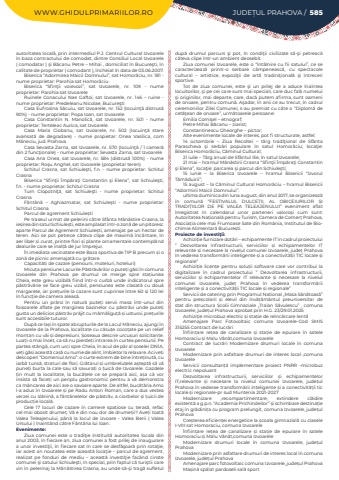 WWW.GHIDULPRIMARIILOR.RO JUDE%u021aUL PRAHOVA / 585autoritatea local%u0103, prin intermediul P.J. Centrul Cultural Izvoarele %u00een baza contractului de comodat, dintre Consiliul Local Izvoarele ( comodatar ) %u015fi B%u0103canu Petre %u2013 Mihai , domiciliat %u00een Bucure%u015fti, %u00een calitate de proprietar ( comodant ), %u00eencheiat %u00een data de 03.06.2007.%u00a0Biserica %u201cAdormirea Maicii Domnului%u201d, sat Homor%u00e2ciu, nr. 181 - nume proprietar:%u00a0Parohia sat Homor%u0203ciu%u00a0Biserica %u201cSfin%u0163ii voievozi%u201d, sat Izvoarele, nr. 109 - nume proprietar:%u00a0Parohia sat Izvoarele%u00a0Ruinele Conacului Nae Gaftoi, sat Izvoarele, nr. 146 %u2013 ruine - nume proprietar:%u00a0Predeleanu Nicolae, Bucure%u015fti%u00a0Casa Eufrosina S%u0103cuiu, sat Izvoarele, nr. 152 (locuin%u0163%u0103 distrus%u0103 90%) - nume proprietar:%u00a0Popa Ioan, sat Izvoarele%u00a0Casa Constantin N. Manolic%u0103, sat Izvoarele, nr. 501 - nume proprietar:%u00a0Terteleac Aurica, sat Izvoarele%u00a0Casa Maria Ciobanu, sat Izvoarele, nr. 502 (locuin%u0163%u0103 stare avansat%u0103 de degradare) - nume propietar:%u00a0 Onea Vasilica, com M%u0103neciu, jud. Prahova%u00a0Casa Sevasta Zarna, sat Izvoarele, nr. 570 (locuin%u0163%u0103 / 1 camer%u0103 din 2 func%u0163ionale) - nume proprietar:%u00a0Sevasta Zarna, sat Izvoarele%u00a0Casa Ana Onea, sat Izvoarele, nr. 584 (distrus%u0103 100%) - nume proprietar:%u00a0Ro%u015fu Anghel, sat Izvoarele (proprietar teren)%u00a0Schitul Crasna, sat Schiule%u015fti, f.n. - nume proprietar:%u00a0 Schitul Crasna%u00a0Biserica %u201cSfin%u0163ii %u00cemp%u0103ra%u0163i Constantin %u015fi Elena%u201d, sat Schiule%u015fti, f.n. - nume proprietar:%u00a0Schitul Crasna%u00a0Turn Clopotni%u0163%u0103, sat Schiule%u015fti - nume proprietar:%u00a0 Schitul Crasna%u00a0F%u00e2nt%u00e2n%u0103 %u2013 Aghiazmatar, sat Schiule%u015fti - nume proprietar: Schitul CrasnaParcul de agrement Schiule%u0219ti%u00a0Pe traseul urmat de pelerini c%u0103tre Sf%u00e2nta M%u0103n%u0103stire Crasna, la ie%u0219irea din satul Schiule%u0219ti, este amplasat %u00eentr-o zon%u0103%u00a0de un pitoresc aparte Parcul de Agrement Schiule%u0219ti, amenajat pe un hectar de teren. Aici se pot petrece c%u00e2teva clipe de maxim%u0103%u00a0 %u00eenc%u00e2ntare, %u00een aer liber %u0219i curat, printre flori %u0219i plante ornamentale contempl%u00e2nd dealurile care se %u00eenal%u021b%u0103%u00a0de jur %u00eemprejur.%u00cen imediata vecinatate este Baza sportiva de TIP B precum %u0219i o zon%u0103%u00a0de picnic amenajat%u0103%u00a0cu gr%u0103tare.Capacit%u0103%u021bi de cazare (pensiuni, moteluri, hoteluri)Micu%u021ba pensiune Lacurile P%u0103str%u0103v%u0103rilor o pute%u021bi g%u0103si %u00een comuna Izvoarele din Prahova pe drumul ce merge spre sta%u021biunea Cheia, este greu vizibil%u0103 fiind %u00eentr-o curb%u0103 unde indicatorul spre p%u0103str%u0103v%u0103rie se face greu vizibil, pensiunea este clasat%u0103 cu dou%u0103 margarete, iar pre%u021burile la cazare sunt cuprinse %u00eentre 60 %u0219i 120 lei %u00een func%u021bie de camera aleas%u0103.Pentru un pr%u00e2nz %u00een natur%u0103 pute%u021bi servii masa %u00eentr-unul din foi%u0219oarele aflate pe marginea bazinelor cu p%u0103str%u0103vi unde pute%u021bi gusta un delicios p%u0103str%u0103v pr%u0103jit cu m%u0103m%u0103ligu%u021b%u0103 %u0219i usturoi, pre%u021burile sunt accesibile tuturor.Dup%u0103 ce la%u0219i %u00een spate abrupturile de la Lacul M%u0103neciu, ajungi %u00een Izvoarele de la Prahova, localitate cu c%u0103su%u021be coco%u021bate pe un relief montan cu v%u0103i %u0219i depresiuni. %u0218oseaua descrie urcu%u0219uri solicitante. Lua%u021bi-o mai %u00eencet, ca s%u0103 nu pierde%u021bi intrarea %u00een curtea pensiunii. Pe partea st%u00e2ng%u0103, cum urci spre Cheia, %u00een acul de p%u0103r al %u0219oselei DN1A, ve%u021bi g%u0103si aceast%u0103 cas%u0103 cu nume de alint, %u00eembietor la relaxare. Aci ve%u021bi descoperi %u201cDomeniul Amo%u201d: o curte extrem de bine %u00eentre%u021binut%u0103, cu iarb%u0103 tuns%u0103, straturi de flori. Gr%u0103tarul %u0219i umbrelu%u021bele a%u0219tept%u0103 s%u0103 v%u0103 pune%u021bi burta la cale sau s%u0103 savura%u021bi o %u021buic%u0103 de Izvoarele. Gazdele %u021bin mult la localitate, la buc%u0103%u021bele ce se prepar%u0103 aici, a%u0219a c%u0103 vor insista s%u0103 face%u021bi un periplu gastronomic pentru a v%u0103 demonstra ca m%u00e2ncarea de aici are o savoare aparte. De altfel, buc%u0103t%u0103ria Amo l-a adus %u00een Izvoarele %u0219i pe Radu Anton Roman, care a dus vestea verzei cu sl%u0103nin%u0103, a f%u00e2nt%u00e2nelelor de p%u0103str%u0103v, a ciorbelor %u0219i %u021buicii de produc%u021bie local%u0103.Cele 17 locuri de cazare %u00een camere spa%u021biose cu teras%u0103, refac cel mai obosit drume%u021b. V%u0103%u00a0e din nou dor de drume%u021bii? Ave%u021bi toat%u0103 Valea Teleajenului, p%u00e2n%u0103 la locul de izvoare - Valea Berii ( Valea Ursului ) %u00eenaint%u00e2nd c%u0103tre F%u00e2nt%u00e2na lui Ioan.Evenimente:Ziua comunei este o tradi%u0163ie instituit%u0103 autoritatea locala din anul 2003, %u00een fiecare an, ziua comunei a fost prilej de inaugurare a unor investi%u0163ii, %u00een fiecare sat %u00een care se desf%u0103%u015foar%u0103 prin rota%u0163ie, iar acest an noutatea este aceast%u0103 loca%u0163ie %u2013 parcul de agrement, realizat pe fonduri de mediu %u2013 aceast%u0103 investi%u0163ie fac%u0203nd cinste comunei %u015fi satului Schiule%u015fti, %u00een special, prin faptul c%u0103 turi%u015ftii care vin %u00een pelerinaj la M%u0103n%u0103stirea Crasna, au unde s%u0103-%u015fi trag%u0103 sufletul dup%u0103 drumul parcurs %u015fi pot, %u00een condi%u0163ii civilizate s%u0103-%u015fi petreac%u0103 c%u0203teva clipe %u00eentr-un ambient deosebit.Ziua comunei Izvoarele, este o %u201c%u00eent%u00e2lnire cu fii satului%u201d, ce se caracterizeaz%u0103 printr-o serbare c%u0203mpeneasc%u0103, cu spectacole cultural %u2013 artistice, ex