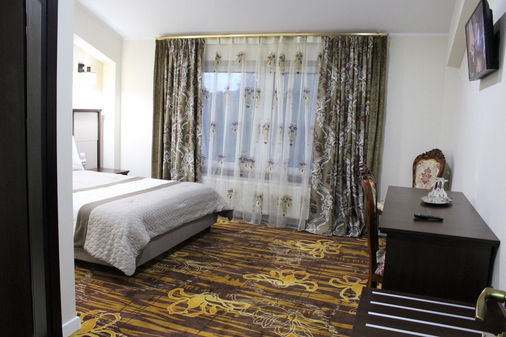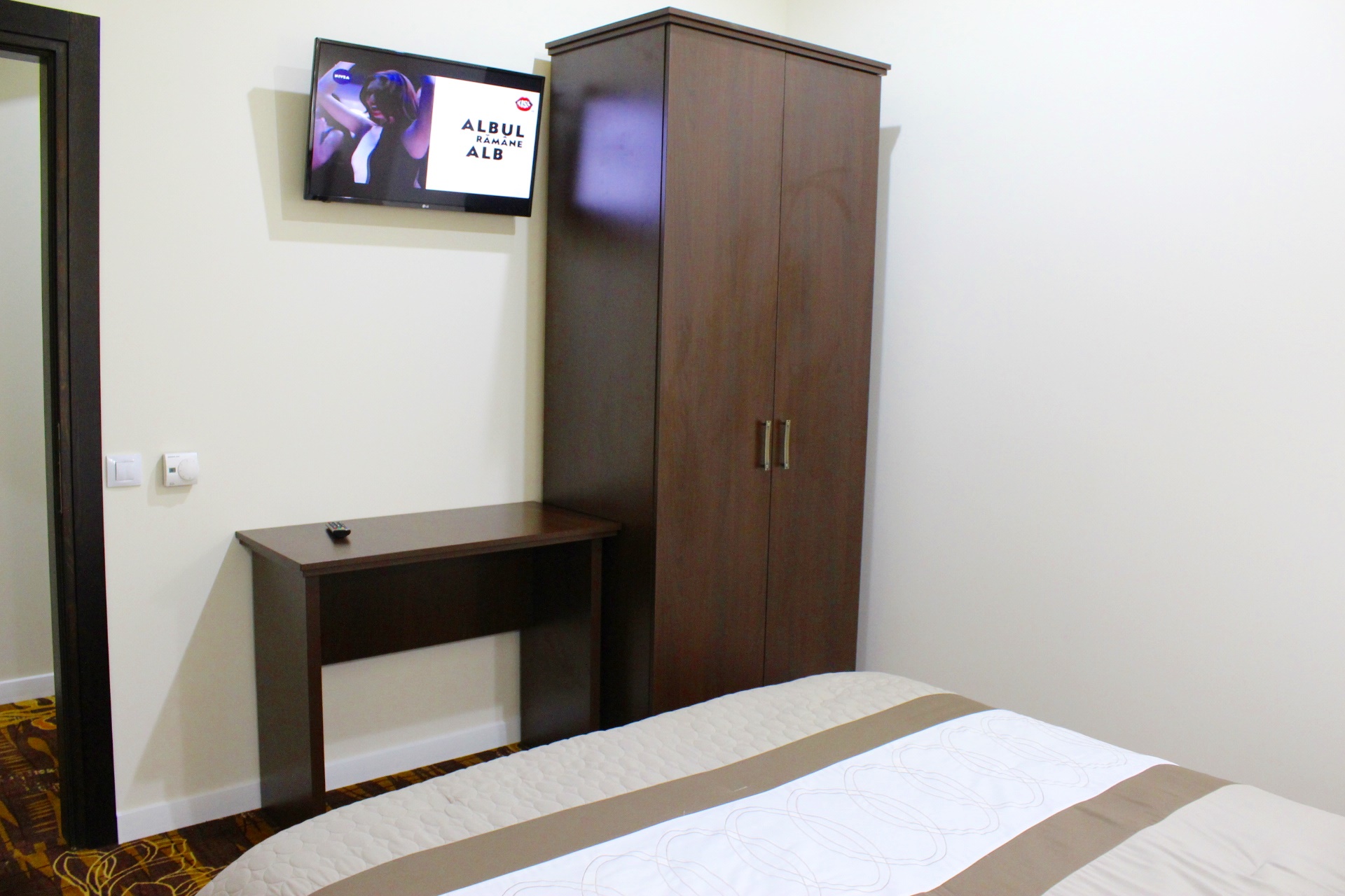 Camerele duble (PREȚ: 150 RON/NOAPTE) dispun de un pat dublu, aer condiționat, frigider, mobilier modern, baie proprie, uscător, televizor și internet.