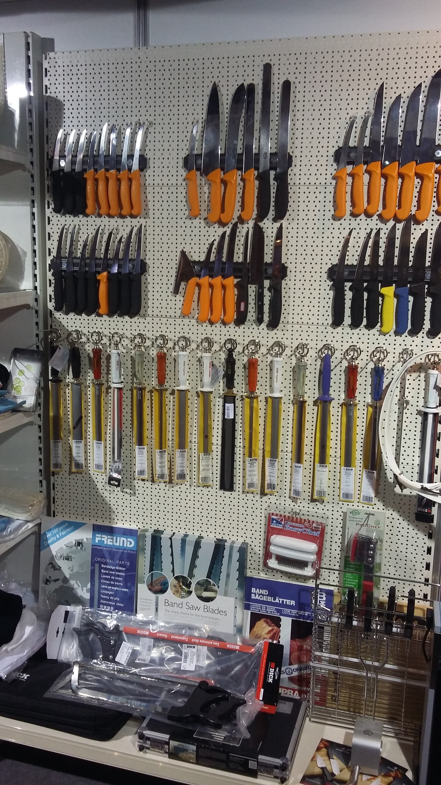 Comercializam cutite profesionale pentru macelari din marcile Dick, Swibo, Victorinox, Giesser, Mora, Tridentum. In functie de operatia efectuata lamele cutitelor pot diferi ca forma si lungime, fiind pentru dezosat, injunghiat, transat, feliat, jupuit, filetat, ales carne etc.