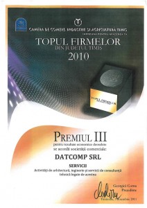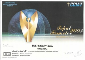 Forţa proiectelor noastre ne-a adus recunoaşterea Camerei de Comerţ, Industrie şi Agricultură a Judeţului Timiş şi ne-a situat în Top III al companiilor, în anii 2003 şi 2010.