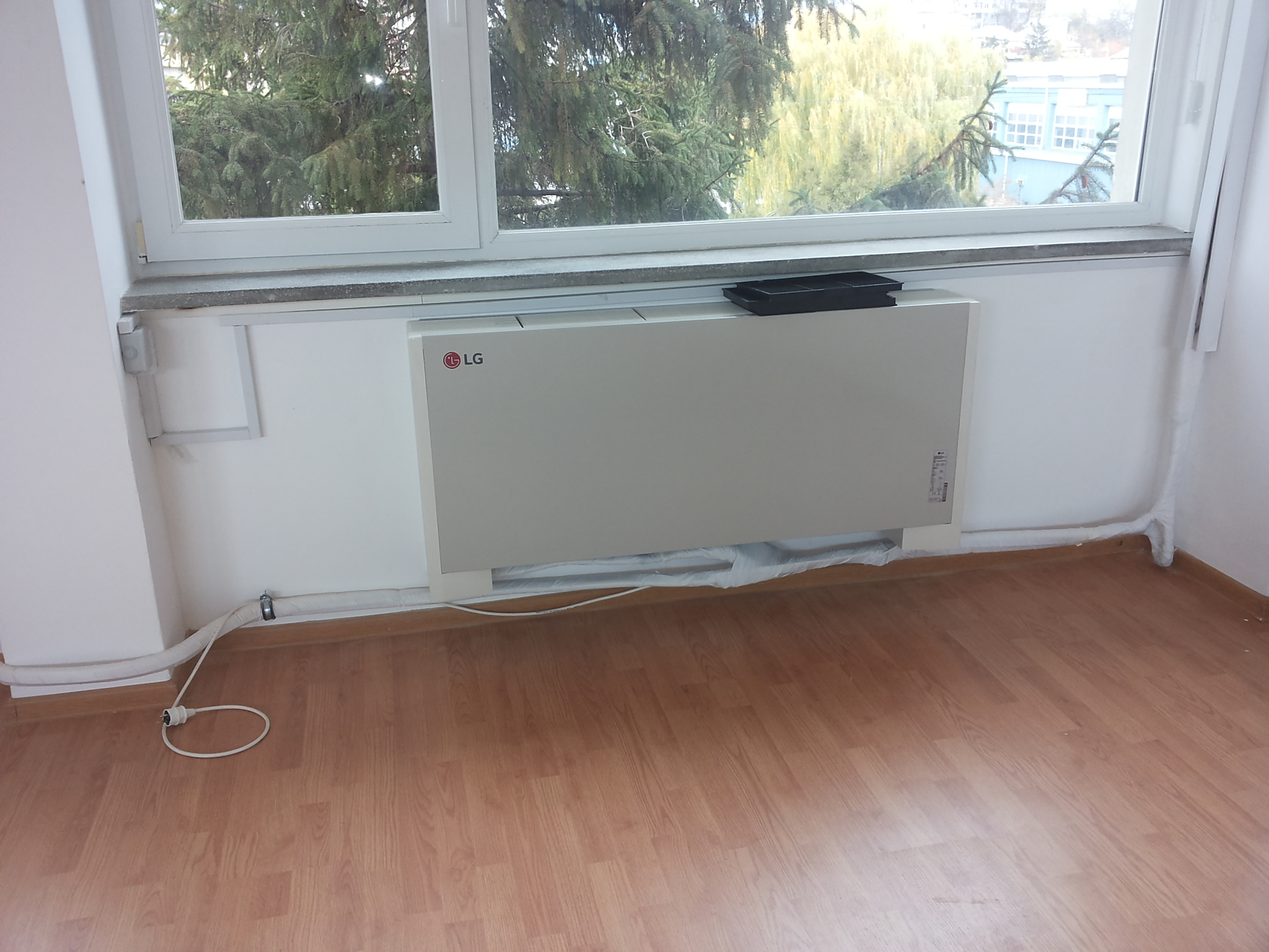 Sistem VRF la cladire de birouri Iasi cu racire si incalzire formata dintr-o unitate externa si cu unitati interne de pardosela si unitati tip split de perete.Echipamentul functioneaza cu o singura telecomanda de unde se controleaza toate birourile si holurile. Se poate controla temperatura din camera, ventilatia si functiile-racire, incalzire, ventilatie, dezumidificare, automat.Echipamentele functioneaza in sistemul de incalzire pana la o temperatura exterioara de -25 C. Iarna echipamentul functioneaza pe incalzire fara aport de incalzire suplimentar.