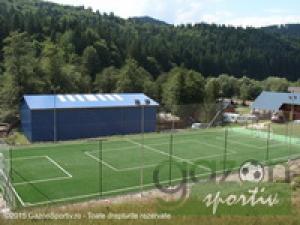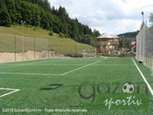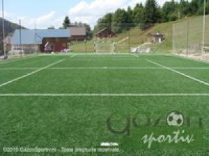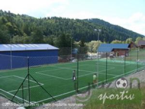 Amenajare teren multisport (fotbal+volei) cu gazon artificial sintetic cu fir fibrilat de 40 mm în localitatea Predeal, judeţul Braşov, în luna iunie 2009.